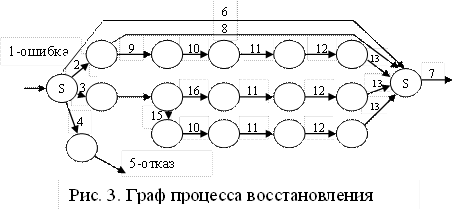 Процессы восстановления в пассивных и активных отказоустойчивых КС имеют много общего. Рассмотрим граф на рис. 3.[1,7,10]: