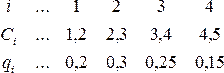Пусть имеется система, состоящая из четырех подсистем, т.е. n = 4. подсистемы характеризуются стоимостями Ci и вероятностями отказа за заданное время qi: