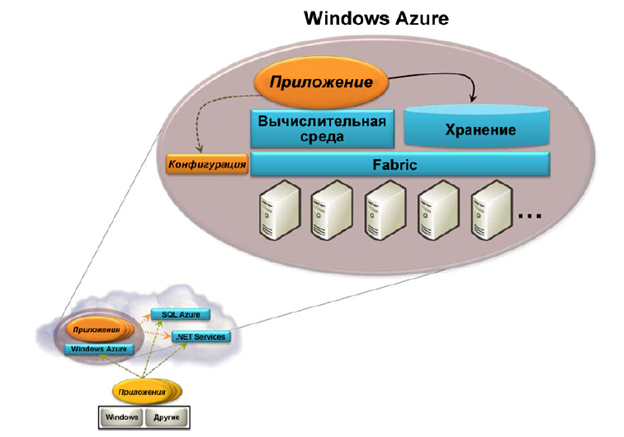· Windows Azure. Обеспечивает среду на базе Windows для выполнения приложений и хранения данных на серверах в центрах обработки данных корпорации Майкрософт.