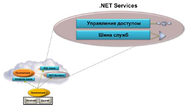 · .NET Services. Обеспечивают распределенную инфраструктуру для «облачных» приложений и локальных приложений.