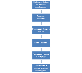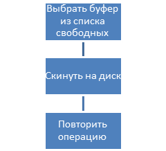 3. Ядро не может обнаружить блок в хеш-очереди и, пытаясь выделить буфер из списка свободных буферов (как в случае 2), обнаруживает в списке буфер, который помечен как "занят на время записи". Ядро должно переписать этот буфер на диск и выделить другой буфер.