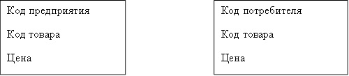 Между таблицами Поставки товаров и Заказы потребителей существует отношения «много-ко-многим», так как на каждый поставляемый товар может быть более одного заказа. Аналогично, каждый заказанный товар может производится более чем одним предприятием. Связь между полями устанавливается на основании значения Код товара.