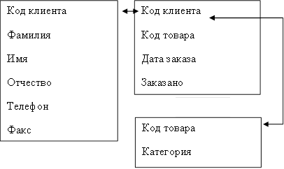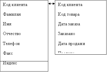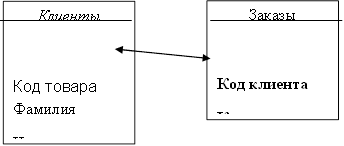 Поскольку покупатель может сделать несколько заказов, каждый из которых в свою очередь может содержать несколько товаров, нам необходимо две таблицы: Клиенты и Заказы. В качестве связывающего поля определим Код клиента, а отношение «один-ко-многим »