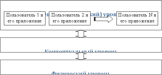 В процессе исследований посвященных устройству СУБД, предлагались различные способы ее реализации. Наиболее жизнеспособной оказалась трехуровневая модель, определяющая следующие уровни абстракций для определения структуры СУБД (рисунок 2.1): внутренний (физический), концептуальный и внешний (логический).