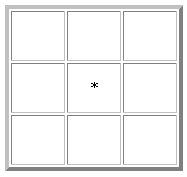 Рис. 7.1 | При отображении таблицы в браузере должны удовлетворяться следующие условия: · таблица должна располагаться по середине экрана и быть симметричной, правильной формы; · в центральной ячейке поместить символ - *, остальные ячейки должны быть пустыми. |