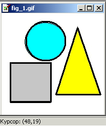 2. С помощью графического редактора Pain создать рисунок размером 10х10 см или 300х300 точек (пикселей), состоящий из 3-х фигур (рис 7.3).