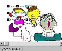 4.1. Открыть файл fig_1 в графическом редакторе и уточнить координаты областей рисунка- последовательно выделяя предполагаемые активные зоны, прочитать в строке состояния координаты нужных точек (рис. 7.3) и записать их для дальнейшего использования.