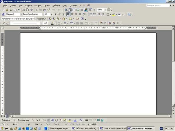 Рис. 2.1.2(1). Рабочее окно текстового процессора Word.