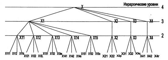 Сначала производится отбор наиболее существенных показателей объекта, влияющих на степень риска аварийного загрязнения окружающей среды. Затем строится дерево показателей, которое имеет характер иерархического графа. На первом иерархическом уровне такого дерева находятся индивидуальные показатели опасности. Отдельные, близкие по смыслу индивидуальные показатели объединяются в группы, которым соответствуют групповые показатели, располагаемые на втором иерархическом уровне. При этом некоторые индивидуальные показатели перемещаются с первого уровня на второй в неизмененном виде. Аналогичным образом показатели второго иерархического уровня группируются и создается третий иерархический уровень. На последнем четвертом уровне древовидного графа находится обобщенный показатель опасности объекта.