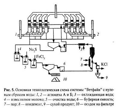 Поскольку для работы системы "Ветфайн" используется вода, то образуется определенный объем загрязненной сточной воды, требующей очистки. Стоки могут быть очищены до разного конечного состояния в зависимости от возможности сбыта и планируемых объемов сточной воды и уловленных твердых веществ. Исследованы следующие варианты:
