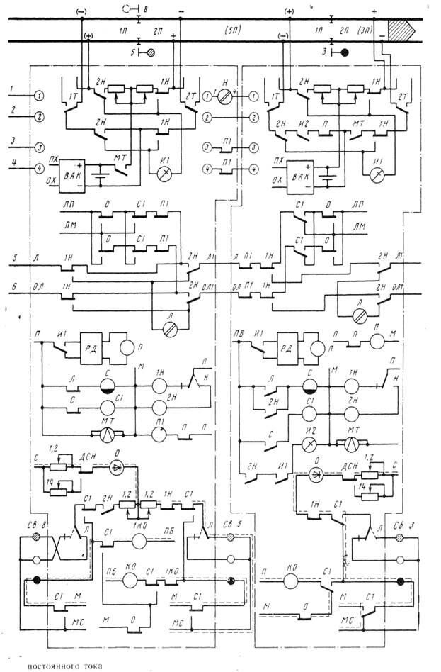 Во время работы схемы направления стрелка прибора не должна отклоняться на нуль (разрыв цепи в период перелета контактов реле стрелка амперметра не успевает фиксировать из-за инерционности). Если во время смены направления прибор хотя бы очень короткое время будет фиксировать нулевое положение, это будет указывать, что в схеме имеются неисправности. Часто это происходит из-за кратковременного обесточивания реле ПЖ или 1ИП вследствие обрыва цепи или потери емкости электролитических конденсаторов или из-за резкого искажения кодовых циклов, что приводит к нечеткой работе счетчиков 1 и 1А дешифраторной ячейки и задержке возбуждения реле Ж.