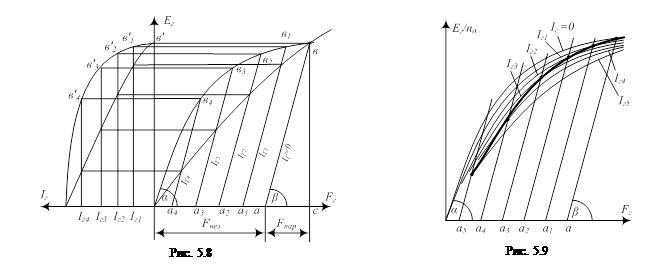 Практически характеристики генератора – Ег/nд =f(Iг) рассчитываются по нагрузочным характеристикам (см. рис. 5.11), причем аа1=wпослIг1, аа2=wпослIг2 и т.д.
