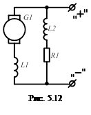 Вторым частным случаем трехобмоточного генератора можно считать генератор, у которого исключена обмотка независимого возбуждения (см. рис 5.12). При этом, как известно из теории электрических машин, генератор может возбудиться только в том случае, если при отсутствии возбуждения в магнитной цепи имеется остаточный магнитный поток.