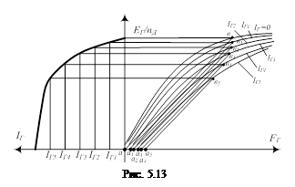 На рис. 5.8 изображено построение внутренней характеристики генератора Ег(Iг) (левый квадрант) по двум характеристикам холостого хода при различных насыщениях магнитной цепи (правый квадрант). Из построения видно, что форма внутренней характеристики определяется формой характеристики холостого хода