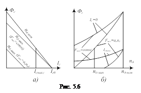 Из сопоставления характеристик при Fнез=const и Fнез=анnд видно, что во втором случае характеристики Фг(nд) при прочих равных условиях круче. Изменение максимального тока в зависимости от частоты вращения вала дизеля полезно, так как позволяет получить различные пусковые токи без всяких переключений в схеме.