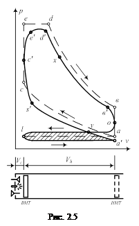 – сжатие воздуха на участке a′s′ при закрытых клапанах. В точке s′ впрыскивается топливо и начинается его горение в процессе сжатия до точки с′;