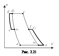 Площадь adef в определенном масштабе представляет собой работу, затраченную на сжатие воздуха в компрессоре. Площадь вcef в том же масштабе соответствует работе, выполненной турбиной. Разность этих двух площадей aвcd определяет полезную работу Н (см. рис. 2.16) газотурбинной установки.
