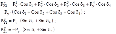 Запишем проекцию Р управляющих двигателей на оси OX1Y1Z1
