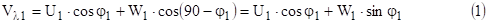 W1 – составляющая скорости КК по направлению перпендикулярному вектору тяги , перед приложением импульса тяги .