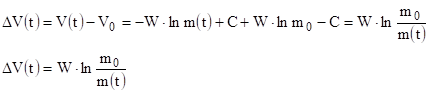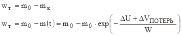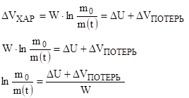 Формула показывающая , сколько нужно израсходовать топлива , чтобы сообщить КК дополнительную скорость (ΔU+ΔVПОТЕРЬ) .