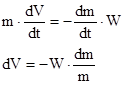 W – скорость истечения продуктов сгорания (ПС) на срезе сопла .