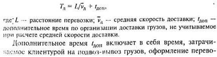 Сроки доставки связаны, прежде всего, с технической или расчетной скоростью, на которую ориентирован данный транс­порт. Срок доставки зависит от вида сообщения, технологий ра­боты транспорта, конструктивных особенностей транспортных средств, условий проведения транспортного процесса, в том чис­ле климатических и многих других факторов. Срок доставки ос­новывается на средней скорости движения и включает в себя время на подвоз-вывоз груза, погрузочно-разгрузочные работы, оформле­ние документов, остановки в пути по различным причинам и т. п.