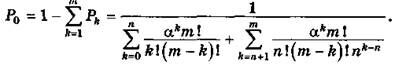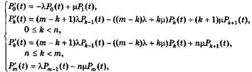 где n — число каналов обслуживания в системе; Pk(t) — вероятность того, что в системе в момент времени t находится k требований.