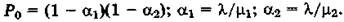 Простейшие системы данного класса имеют показатель­ный закон распределения времени обслуживания на аппа­ратах с параметрами μ1 и μ2 и пуассоновский поток посту­пающих требований с параметром λ.