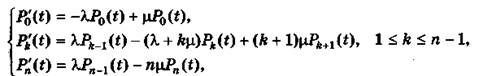 где Pi(t) — вероятность того, что в системе в момент времени t занято k каналов обслуживания.