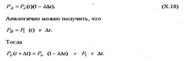 Определим вероятность пребывания системы в состоянии So(Po) и изменения этого состояния за малый отрезок времени ∆t, т.е. вероятность того, что в момент (t + ∆t) система будет в состоянии So. Это событие может произойти двумя способами: