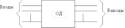 Объект диагноза (ОД) представляют в виде устройства (рис.2.1), имеющего входы и доступные для наблюдения выходы. Процесс диагноза представляет собой последовательность операций, каждая из которых предусматривает подачу на входы объекта некоторого воздействия и определения на выходах реакции на это воздействие. Такую элементарную операцию называют проверкой p. В качестве выходов наблюдения могут служить основные или рабочие выходы системы, а также и дополнительные (контрольные) выходы.