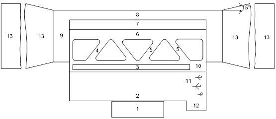 Рисунок 8.1 – Схема аэродрома: 1 - терминал (аэровокзал); 2 - перрон; 3 - вспомогательная РД; 4 - магистральная РД; 5 - соединительная РД; 6 - взлетно-посадочная полоса с искусственным покрытием; 7 - взлетно-посадочная полоса с грунтовым покрытием; 8 - боковые полосы безопасности; 9 - конечные полосы; 10 - предстартовые площадки; 11 - места стоянок самолетов; 12 - площадка специального назначения; 13 - полосы воздушных подходов