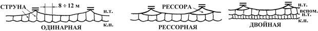 1. Некомпенсированная, когда несущий трос (н.т.) и контактный провод (к.п.) жестко крепятся к опоре. При этом требуется посезонная регулировка натяжения проводов.