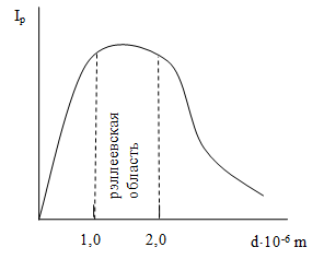 При увеличении частиц до размера, превышающего длину волны – происходит уже отражение света. Исчезает опалесценция, появляется мутность. Та область размеров частиц, где интенсивность рассеянного света максимальна называется рэллеевской областью.