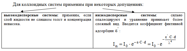 - показатели преломления дисперсной фазы и дисперсионной среды;