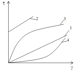 2 – идеальнопластичное тело (тело Бингама – деформация по закону Ньютона после достижения некоторого предела сдвига