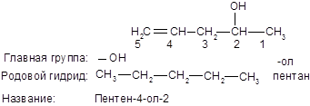 5. Назовите заместители вместе с цифрами(локантами), указывающими атомы углерода, при которых заместители находятся и присоедините их к названию родового гидрида. Локанты двойной и (или) тройной связи и локант главной функциональной группы расположите перед соответствующими суффиксами.