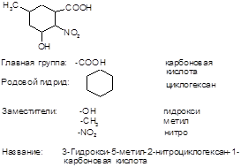 а) для ациклических соединений родовым гидридом является самая длинная неразветвленная цепь, включающую главную функциональную группу а также двойные и (или) тройные связи. Родовой гидрид образуется прибавлением атомов водорода вместо заместителей или гетероатомов, присоединеннных к длинной цепи, чтобы получился насыщенный углеводород.
