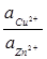 Левый электрод - отрицательный полюс элемента - обратим по отношению к ионам цинка, а правый - положительный полюс элемента - по отношению к ионам меди. ЭДС элемента Даниэля-Якоби зависит поэтому от отношения активностей ионов меди и цинка :