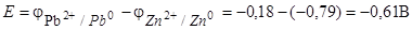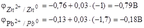 А (-) Zn | Zn(NO3)2 | |  Pb(NO3)2 | Pb (+) К.