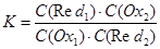 Отношение концентраций представляет собой выражение константы равновесия окислительно-восстановительного процесса: