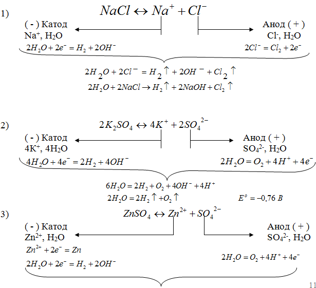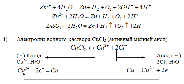 3. Катионы металлов, имеющих стандартный электродный потенциал меньший, чем у водорода, но больший, чем у алюминия, восстанавливаются одновременно с молекулами воды.