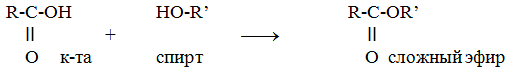 Сложные эфиры могут быть получены при непосредственном взаимодействии кислоты и спирта, например: