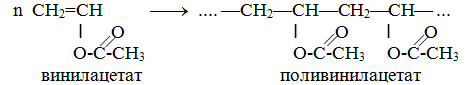 Винилацетат – бесцветная жидкость с Ткип.= 73 оС, d420=0,9342. Легко полимеризуется, образуя синтетический высокополимер – поливинилацетат: