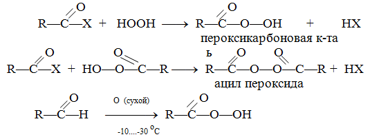 Получают ацилированием пероксида водорода, либо окислением альдегидов: