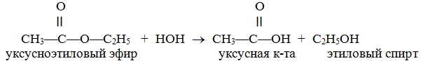 Под действием воды, особенно в кислой или щелочной среде, сложные эфиры разлагаются (гидролизуются) с образованием кислоты и спирта: