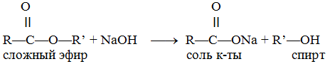 Щелочной гидролиз сложных эфиров называют омылением. Скорость гидролиза эфиров возрастает также при нагревании и в случае применения избытка воды.