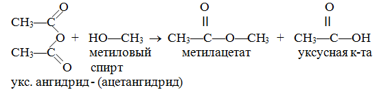 При действии спиртов на ангидриды кислот также достигаются хорошие выходы сложных эфиров: