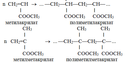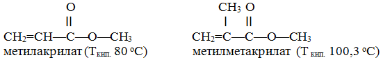 В промышленности пластических масс большое значение имеют эфиры непредельных кислот – акриловой и метакриловой. Обычно получают эфиры этих кислот с метиловым спиртом – метилакрилат и метилметакрилат: