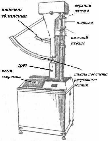 Для определения сопротивления бумаги разрыву применяются вертикальные разрывные машины (динамометры) с маятниковым силоизмерителем типа РМБ-30-2М (РМБ-10-2М, РМБ-3), или разрывные машины с тензометрическим датчиком и электронной системой измерения (рис. 169).